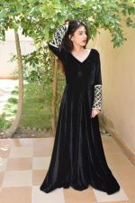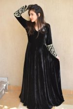Be the first to review “BLACK VELVET EMBELLISHED MIRROR WORK SLEEVES WITH LONG FLARED V NECK ANARKALI”
