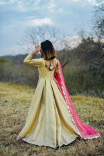 Be the first to review “GOLDEN EMBELLISHED LONG FLARED ANARKALI SET WITH PINK ORGANZA DUPATTA” Cancel reply