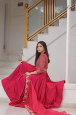 SOLID RED HI SLIT EMBROIDERED ANARKALI SET