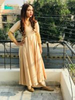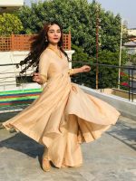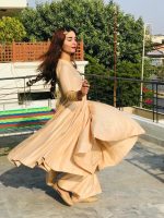 Be the first to review “GOLDEN LONG FLARED ANARKALI WITH EMBELLISHED SLEEVES AND PALAZZO”