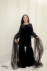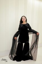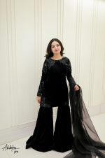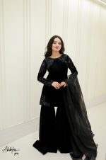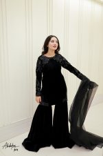 Be the first to review “SOLID BLACK HAND EMBELLISHED KURTA GHARARA WITH DUPATTA”
