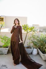 Be the first to review “SOLID BROWN HAND EMBELLISHED KURTA WITH FARSHI SHALWAR”