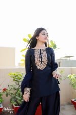 Be the first to review “NAVY BLUE EMBELLISHED KURTA WITH FARSHI SHALWAR AND DUPATTA”