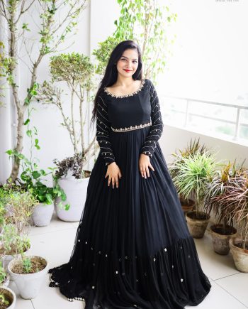 SOLID BLACK HAND EMBELLISHED ANARKALI SET