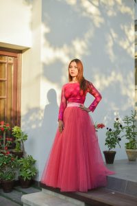 PINK TULLE NETTED SKIRT SET WITH EMBELLISHED BLOUSE SET