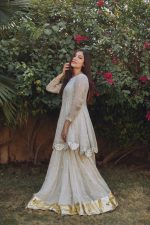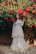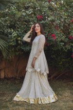 Be the first to review “PURE WHITE MIRROR EMBELLISHED SCALLOPS PEPLUM SET WITH EMBOSSED GOTTA WORK LONG FLARED LAGANGE SET”