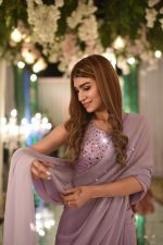 Be the first to review “PURPLE MIRROR WORK EMBROIDERED LONG FLARED SAREE”