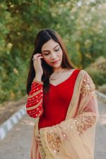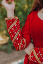 RED LONG FLARED EMBROIDERED MIRROR WORK SKIRT WITH WHITE EMBROIDERED SHIRT Original price was: ₨35,000.00.Current price is: ₨18,000.00.