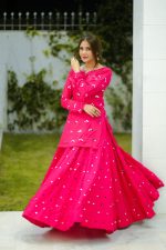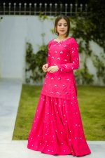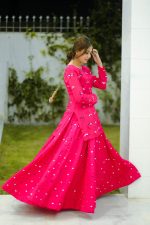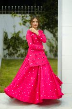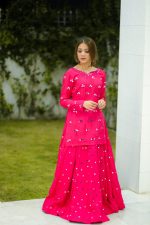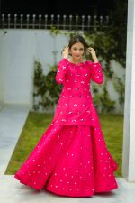 SOLID PINK MIRROR EMBELLISHED WORK KURTA WITH LEHENGA SET Original price was: ₨50,000.00.Current price is: ₨40,000.00.