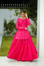 SOLID PINK MIRROR EMBELLISHED WORK KURTA WITH LEHENGA SET