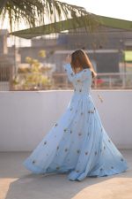SKY BLUE HAND EMBELLSHED LONG FLARED ANARKALI