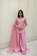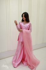 SOLID KURTA EMBELLISHED KURTA WITH SHARARA AND DUPATTA Original price was: ₨45,000.00.Current price is: ₨25,000.00.