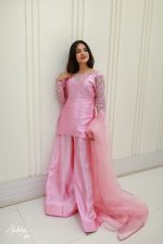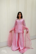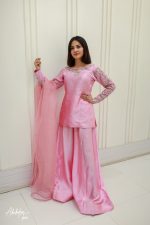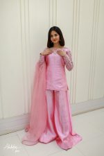 Be the first to review “SOLID BABY PINK HAND EMBELLISHED KURTA WITH SHARARA AND DUPATTA”