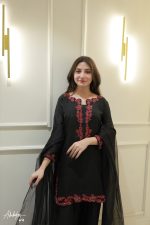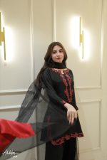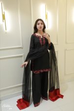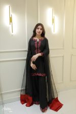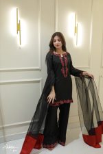 Be the first to review “SOLID BLACK EMBELLISHED KURTA WITH FARSHI SHALWA AND DUPATTA”