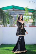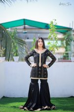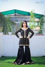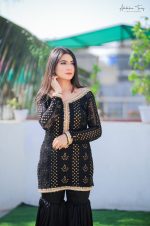 Be the first to review “SOLID BLACK HAND EMBELLISHED CHICKEN KARI KURTA WITH GHARARA”