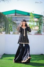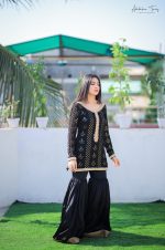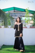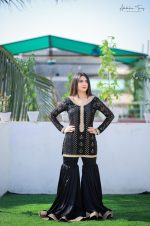 SOLID BLACK HAND EMBELLISHED CHICKEN KARI KURTA WITH GHARARA