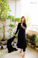 SOLID BLACK MIRROR EMBELLISHED HI SLIT ANARKALI SET WITH PANTS Original price was: ₨35,000.00.Current price is: ₨30,000.00.