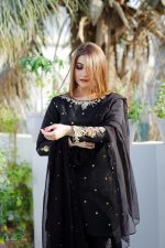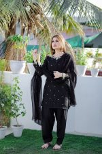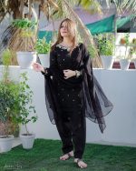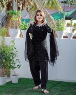 Be the first to review “SOLID BLACK HAND EMBELLISHED KURTA SHALWAR WITH DUPATTA”