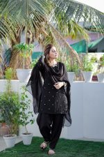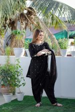 SOLID BLACK HAND EMBELLISHED KURTA SHALWAR WITH DUPATTA