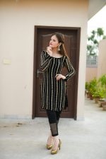 Be the first to review “SOLID BLACK HAND EMBELLISHED KURTI WITH PAJAMA”