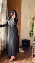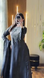 Be the first to review “SOLID BLACK SHEESHA SILK HAND EMBELLISHED SILVER WORK KURTA WITH PALAZZO AND DUPATTA”
