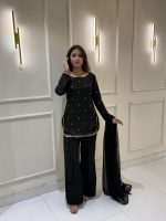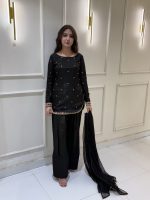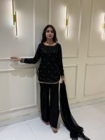 Be the first to review “SOLID BLACK SHORT KURTA WITH SHALWAR AND DUPATTA”