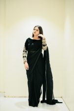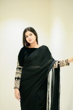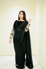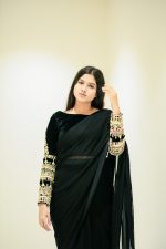 Be the first to review “SOLID BLACK VELVET BLOUSE WITH CHIFFON SAREE”