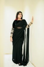 SOLID BLACK HAND EMBELLISHED SAREE WITH VELVET BLOUSE