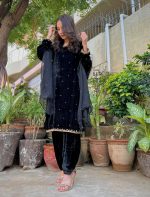 Be the first to review “SOLID BLACK VELVET HAND EMBELLISHED KURTA SUIT SET”