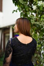 Measure the space between your shoulder points. Position the end of the tape flat against your back at the first shoulder point. You should be measuring across the broadest part of your shoulders which usually lands out roughly to 1 to 2 inches (2.5cm to 5cm) below the neckline.
