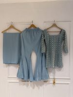 SOLID BLUE SHORT FITTED KURTI WITH FISH PANTS