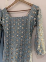 Be the first to review “SOLID BLUE SHORT FITTED KURTI WITH FISH PANTS”