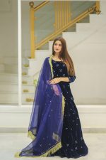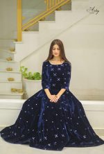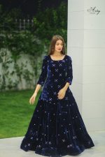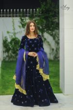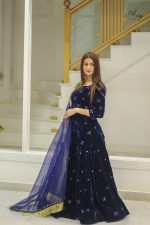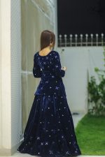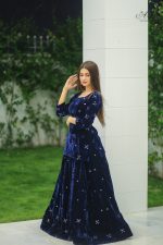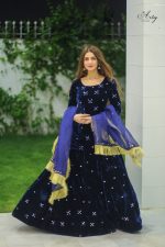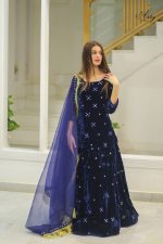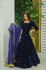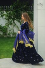 Be the first to review “SOLID BLUE VELVET MIRROR WORK KURTA WITH LEHENGA SET AND DUPATTA”