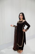 Be the first to review “SOLID BROWN HAND EMBELLISHED VELVET KURTA TROUSER WITH DUPATTA”
