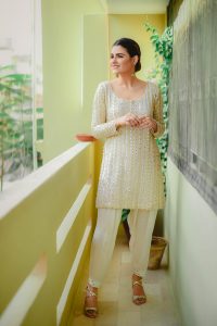 SOLID IVORY LONG FLARED MIRROR ANARKALI SET Original price was: ₨25,000.00.Current price is: ₨15,000.00.