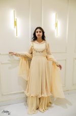 Measure the space between your shoulder points. Position the end of the tape flat against your back at the first shoulder point. You should be measuring across the broadest part of your shoulders which usually lands out roughly to 1 to 2 inches (2.5cm to 5cm) below the neckline.