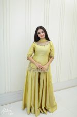 Be the first to review “SOLID GOLDEN YELLOW HAND EMBELLISHED KURTI WITH SHARARA”