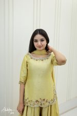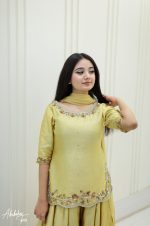 SOLID GOLDEN YELLOW HAND EMBELLISHED KURTI WITH SHARARA