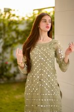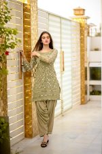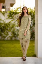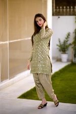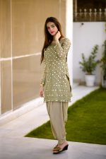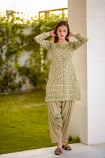 Be the first to review “SOLID GREEN EMBELLISHED KURTA WITH MIRROR WORK AND DHOTI SHALWAR/DUPATTA”