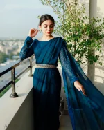 SOLID RED EMBROIDERED LONG FLARED SAREE Original price was: ₨45,000.00.Current price is: ₨25,000.00.