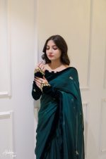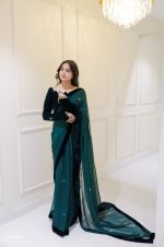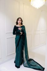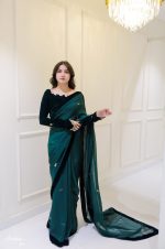 SOLID GREEN HAND EMBELLISHED VELVET BLOUSE SAREE