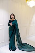 Be the first to review “SOLID GREEN HAND EMBELLISHED VELVET BLOUSE SAREE”