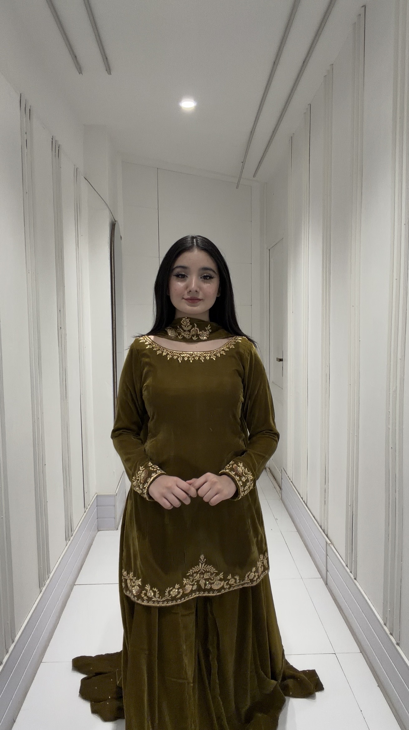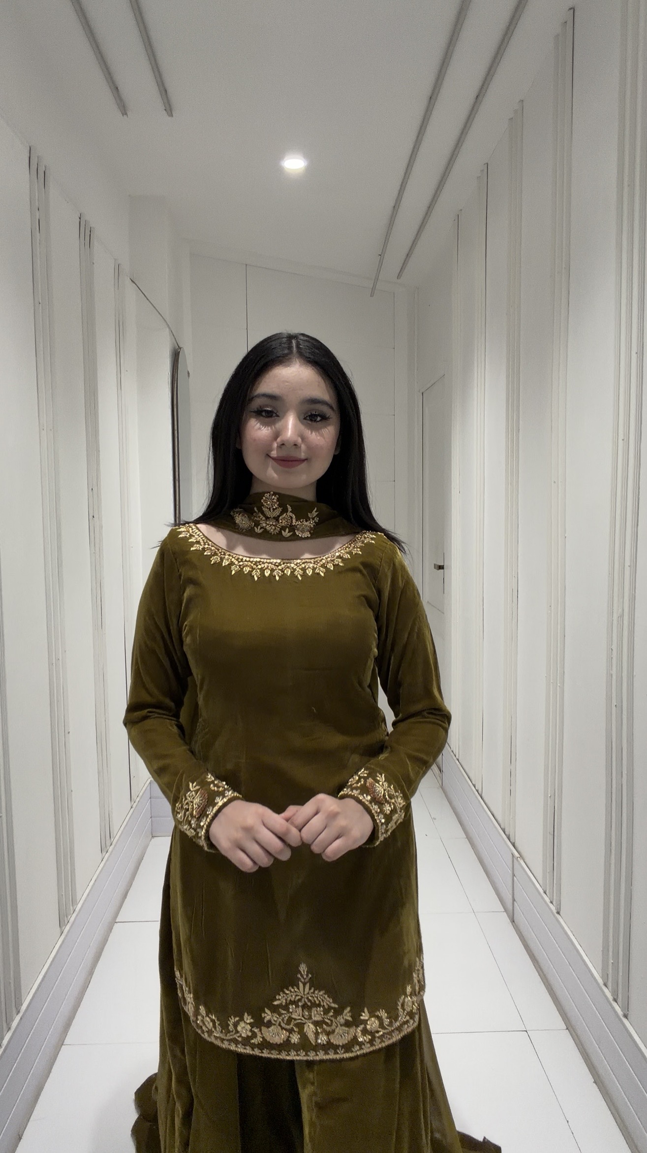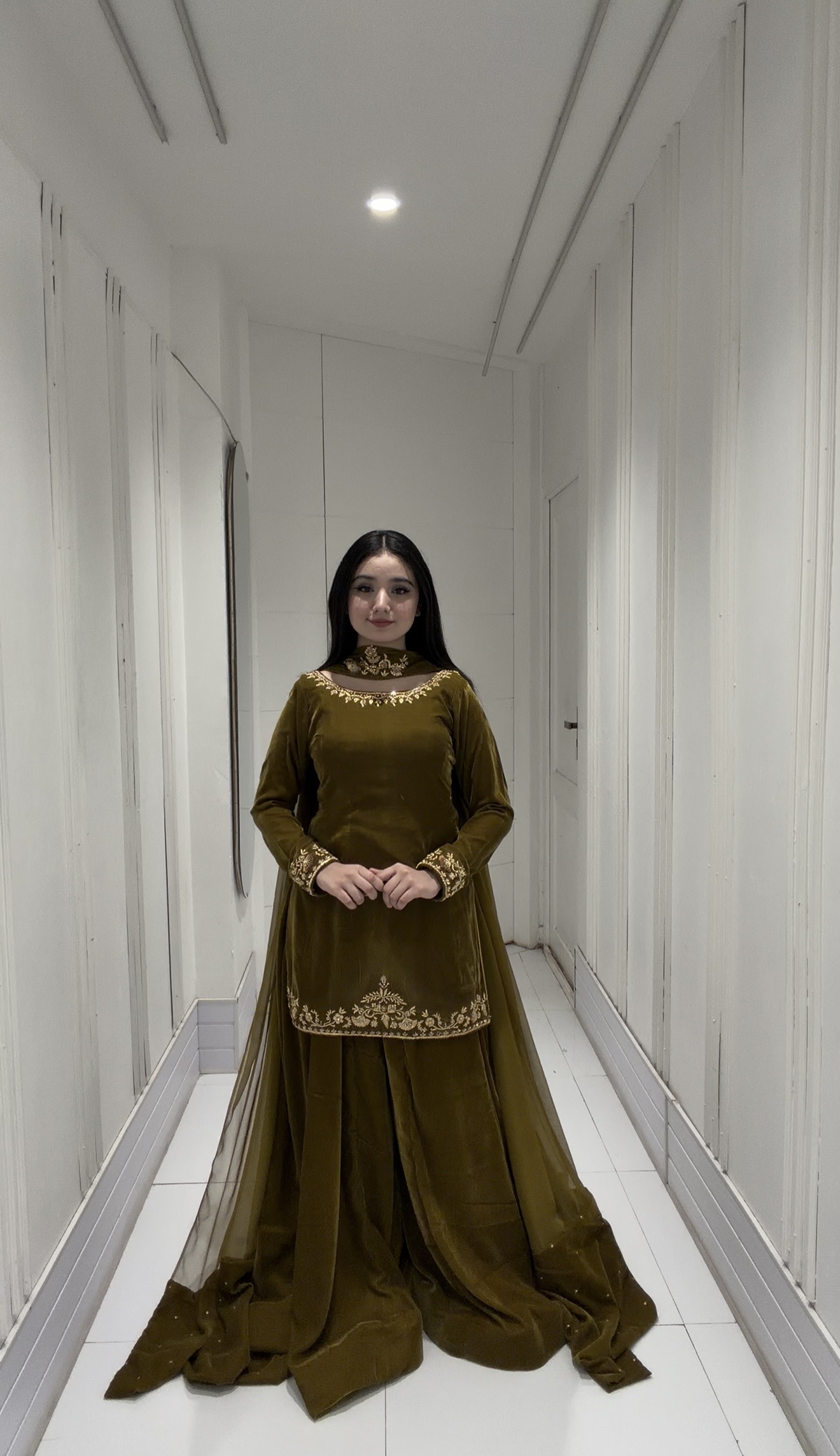 SOLID GREEN VELVET KURTA WITH SHARARA AND DUPATTA