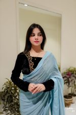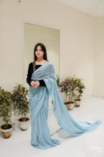 Be the first to review “SOLID GREY CHIFFON SAREE WITH HAND EMBELLISHED BLOUSE”