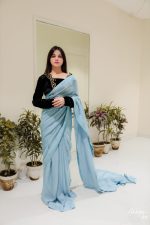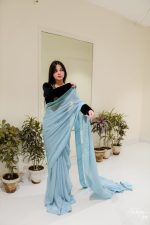 SOLID GREY CHIFFON SAREE WITH HAND EMBELLISHED BLOUSE