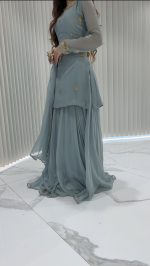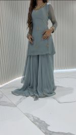 Be the first to review “SOLID GREY HAND EMBELLISHED CORSET KURTA WITH SHARARA AND DUPATTA”