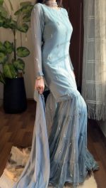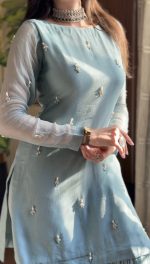 SOLID PEACH LONG HAND EMBELLISHED KURTA WITH SHARARA AND DUPATTA Original price was: ₨25,000.00.Current price is: ₨12,000.00.