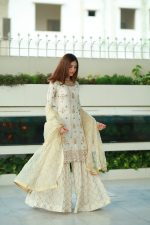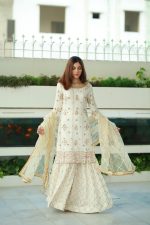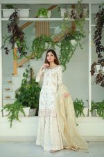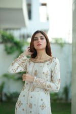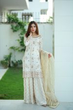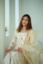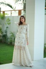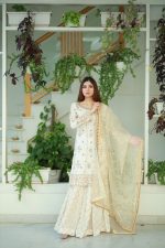 SOLID WHITE HAND EMBELLISHED LONG FLARED ANARKALI SET Original price was: ₨50,000.00.Current price is: ₨42,000.00.