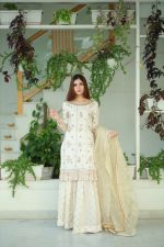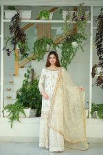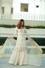 Be the first to review “SOLID IVORY HAND EMBELLISHED CHIKANKARI KURTA WITH DUPATTA AND GHARARA”