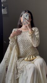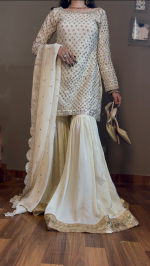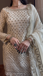 SOLID IVORY MIRROR EMBELLISHED KURTA GHARARA SET